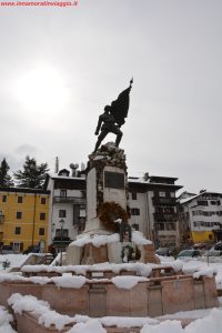 Partiamo dal centro del paese, che ci ha accolto immerso nella neve. Il Duomo di San Matteo (in onore al santo patrone del paese) è in marmo rosa, ed è disposto di fronte al municipio. I primi elementi della chiesa risalgono alla fine del 1300, anche se è stata distrutta più volte, anche nel periodo della Grande Guerra. Infatti è stata ricostruita nel 1922 e inaugurata pochi anni dopo.